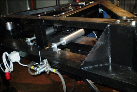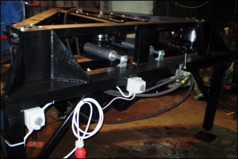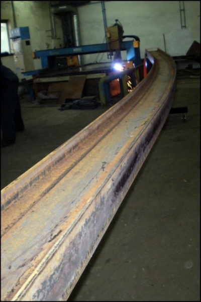 Giętarka, walcarka do dwuteowników to maszyna przeznaczona do gięcia na zimno łuków z dwuteowników stalowych w rozmiarze 160mm. Dwuteownik wyginany jest do łuku o promieniu 7000mm. Napęd przenoszony jest przekładnią łańcuchową z motoreduktora na dwie rolki prowadzące. Obroty rolek dostosowane są do wydajnej pracy i w pełni kontrolowanego procesu gięcia. Moc siłownika dostosowana jest do rozmiaru giętego dwuteownika, w oferowanym wariancie wynosi ona 60T; ciśnienie w układzie hydraulicznym to 160 MPa. Zależnie od wybranej opcji stosujemy rozdzielacze jedno-, dwu- lub trzysekcyjne.